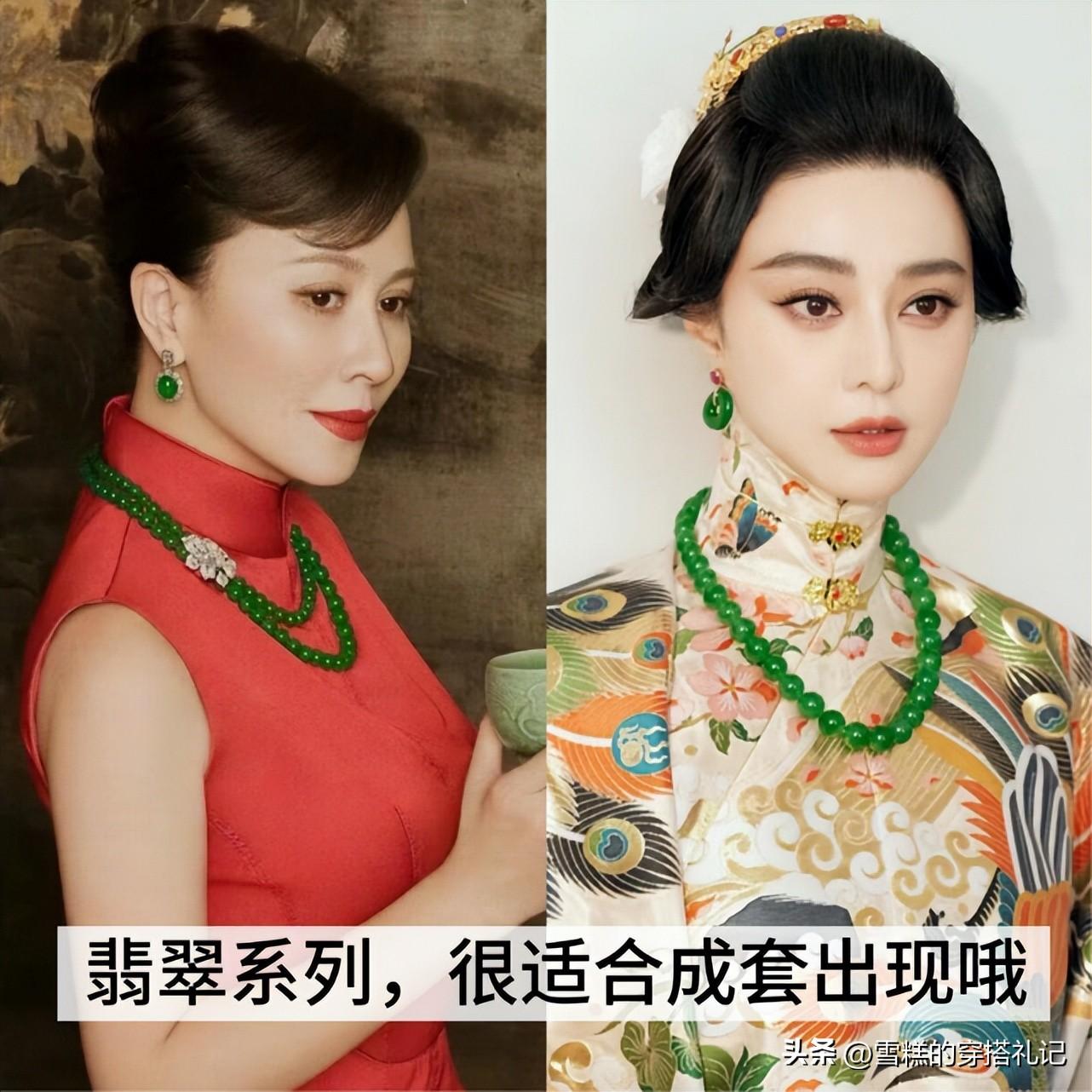 而且翡翠寶石的首飾進行搭配的時候,就比較的適合成套出現,會比單個的搭配更能夠襯托出來雍容華貴和優雅高級的性能,這對於中年階段的女性而言真的是太契合了,不少的中年女藝人就會很喜歡這樣的搭配,彰顯出來的氣質很獨特。