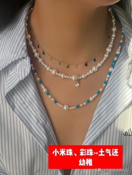像這兩年非常流像近兩年非常流行的小米珠者是彩珠這一類,做成項鍊以及手鍊或者是耳飾的首飾也是非常多的,各位年輕的女性在搭配起來的時候可以豐富我們的整體穿搭風格,但如果到了中年階段的話,只會顯得有一點點的突兀,所以建議各位女性也儘量不要選擇這樣的首飾系列。