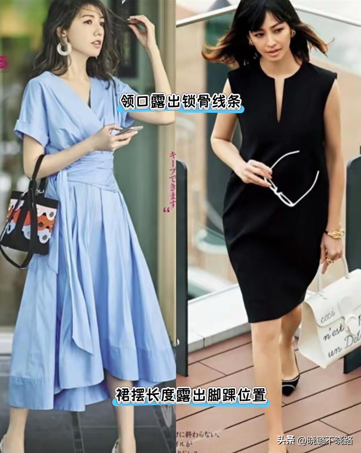 就好比長裙的搭配,衣領位置不能太窄,通過V領、方領、低圓領的設計,露出鎖骨更迷人,而裙襬的長度也很有講究,剛好遮住一半小腿的位置,容錯率更高。
