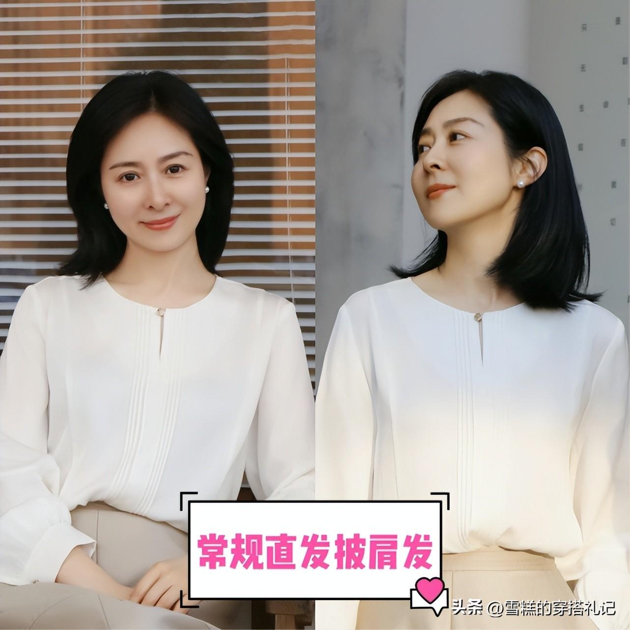 第二款則可以直接進行運用比較簡約大氣的直髮髮型狀態的披肩發,尤其是髮型的長度,最好能夠控制在肩部的位置是最好的,不管是對於臉型的針對性修飾還是其本身髮型狀態的擺搭效果都是最佳的,對於中年階段女性而言可謂是不挑人的絕對優選了。