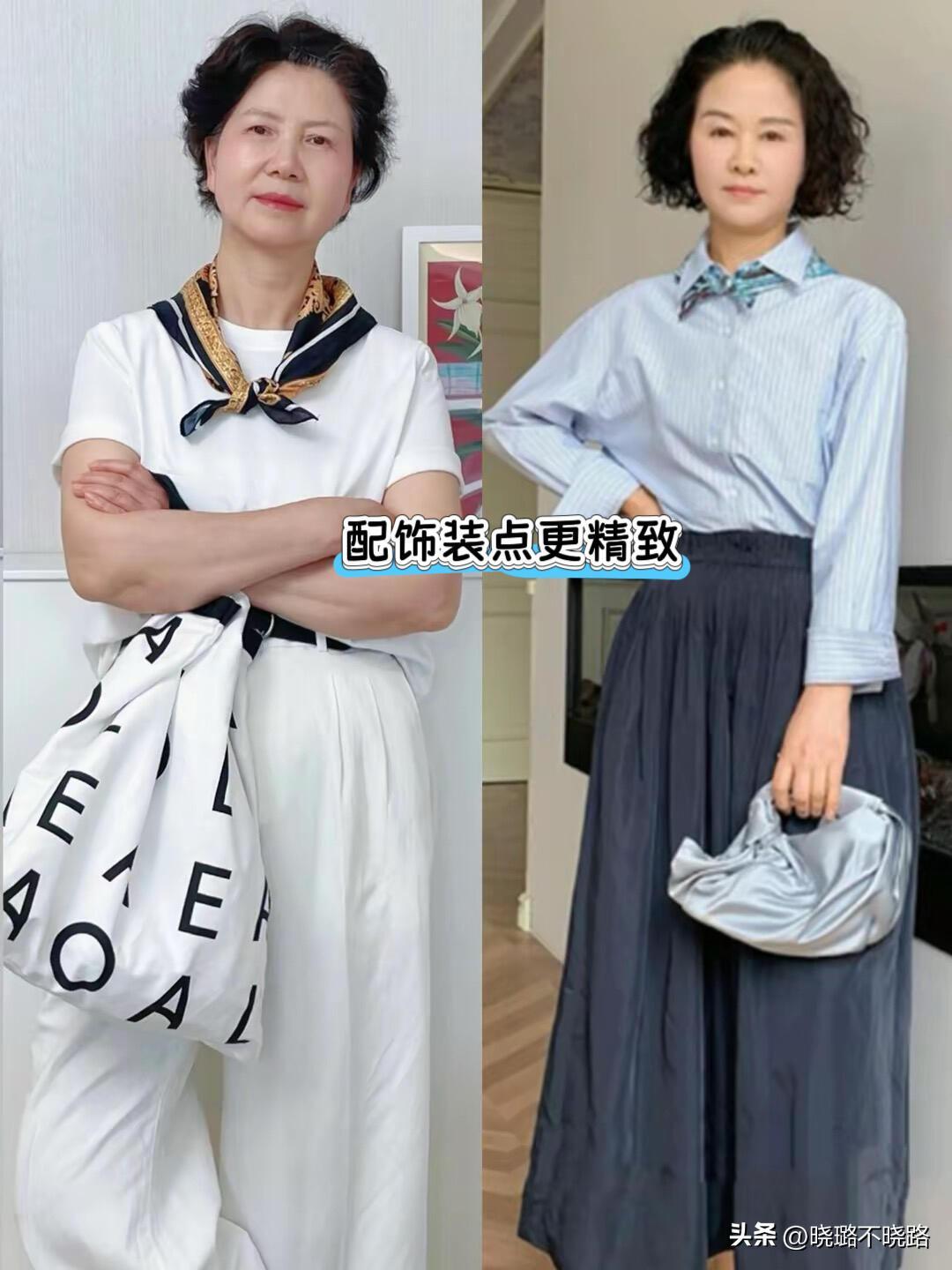 對於中年女性來說,一條印花絲巾、一款手提包、一根珍珠項鍊亦或者是一頂帽子,都是完善造型的關鍵,同時也能提升精緻感。