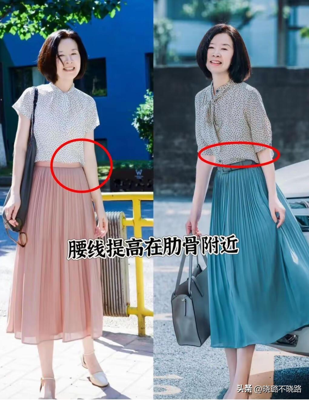 清晰的腰線,可是分割身材比例的“祕訣”,而腰線的位置也很重要,儘量可以在腰部最纖細的地方,往下可以稍微帶點餘量,遮肉效果更好。