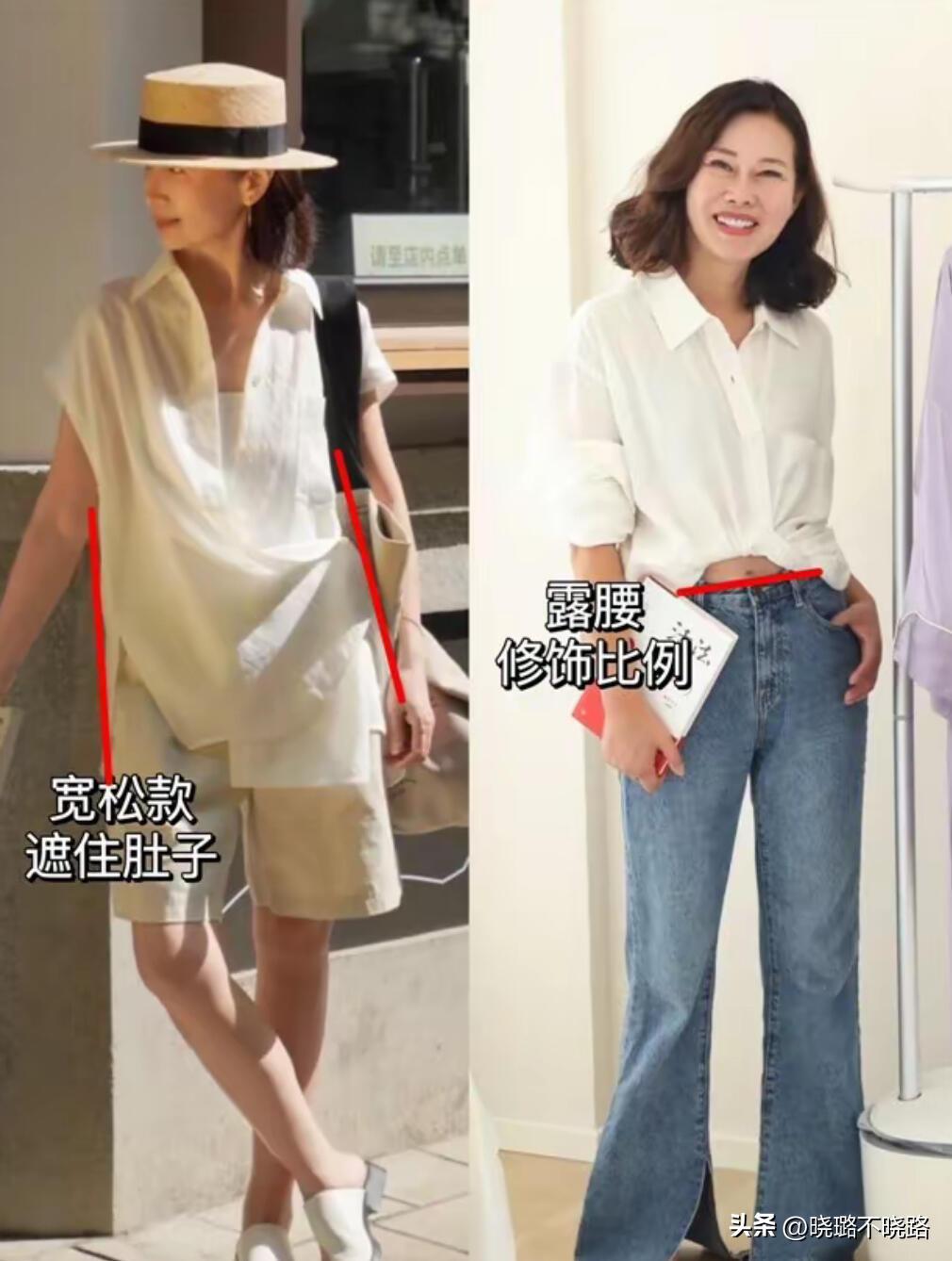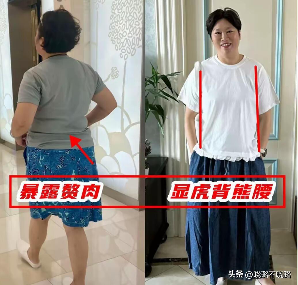 除了選擇面料,衣服的版型也很關鍵,版型不能太寬鬆,穿在身上顯得虎背熊腰,也別選緊身衣,容易暴露贅肉感,若是下身再穿條長裙,形象氣質就會變得邋遢油膩,精氣神全無。
