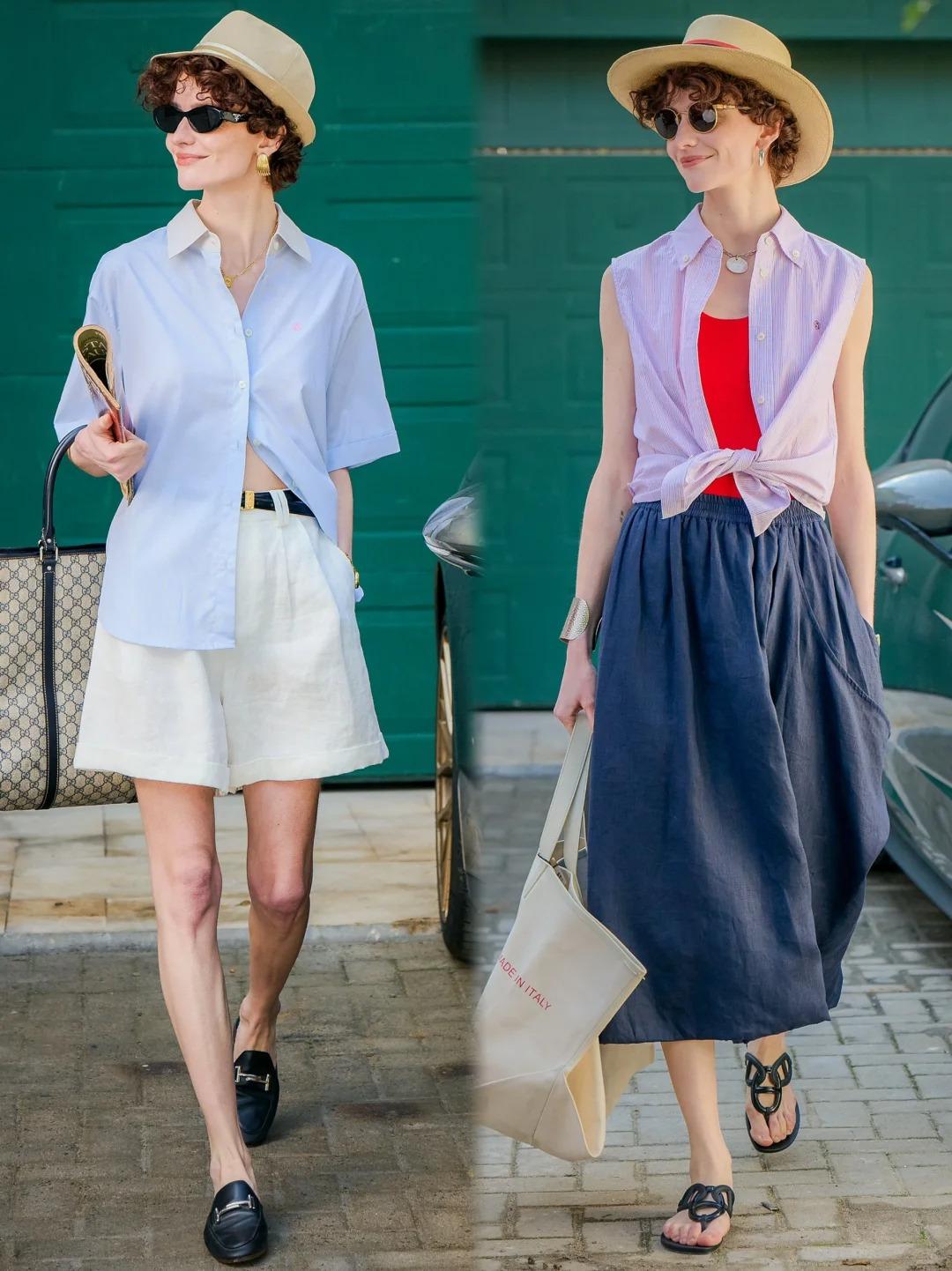 襯衫可是當時女士們的心頭寶。選棉質或麻質面料,天然質樸又透着低調奢華。40 + 的姐姐們,可挑帶細碎褶皺裝飾領口或小巧蝴蝶結點綴的款式,能增添溫婉氣質,弱化年齡感。泡泡袖或羊腿袖設計,復古俏皮但不過分張揚,修飾手臂線條,展現成熟女性的優雅。