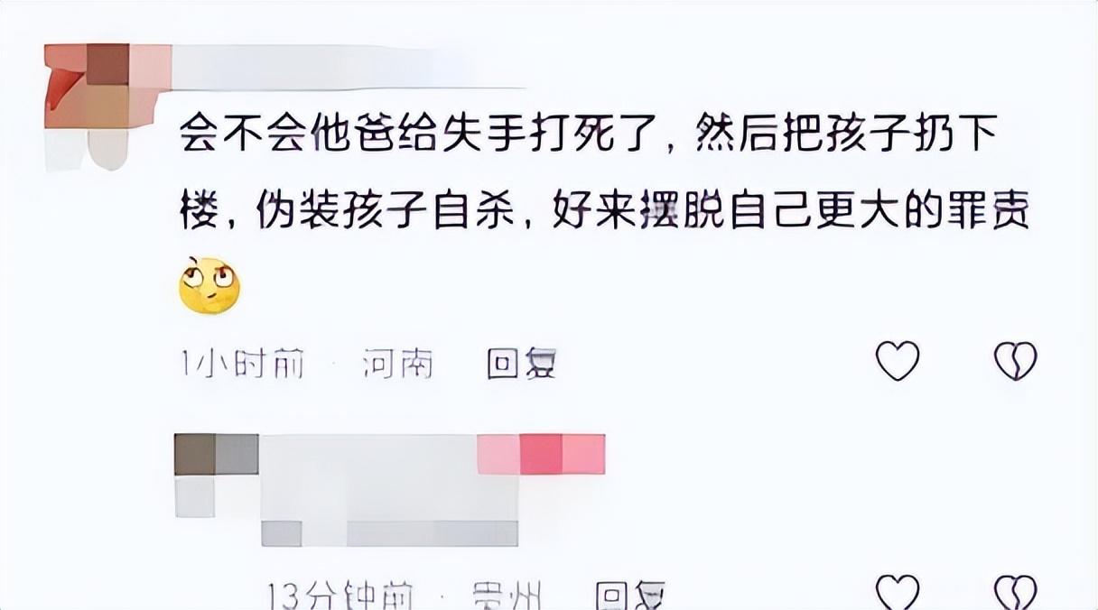 這劇情有點讓人摸不着頭腦?難道兒子墜樓而亡另有蹊蹺?是網友們冤枉了這位“父親”?還是說他沒有暴力傾向,並不是對孩子“非打即罵”?