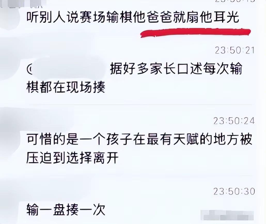 有人在比賽現場,看到小宏鑫因爲敗了一局棋,而被父親拳打腳踢。身上也是新傷疊舊傷,沒有一塊好地方。