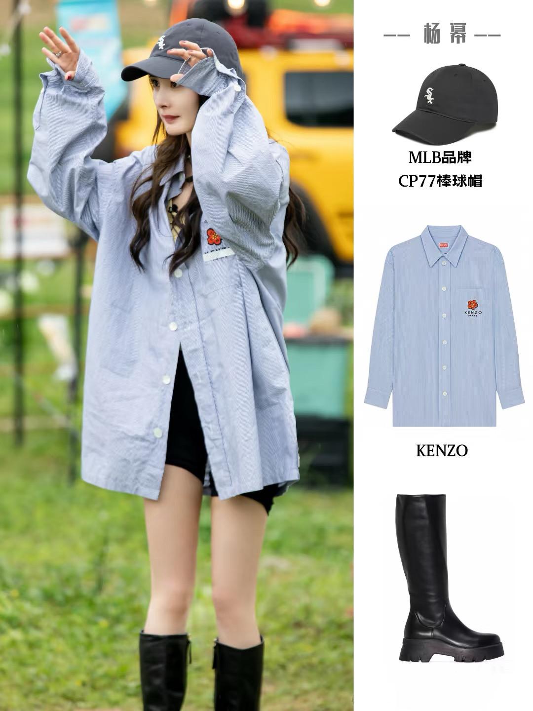 寬鬆的襯衫,在夏天裏非常實用。楊冪的寬鬆襯衫,也打破了常規侷限,擁有更多時尚可能。比如這種拼接撞色的條紋襯衫,就被她穿得很減齡、很少女。