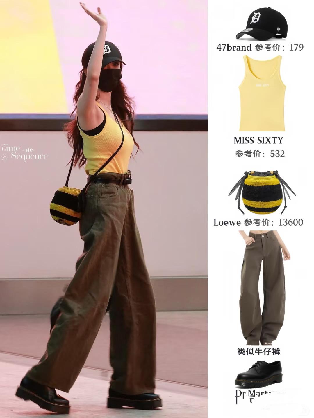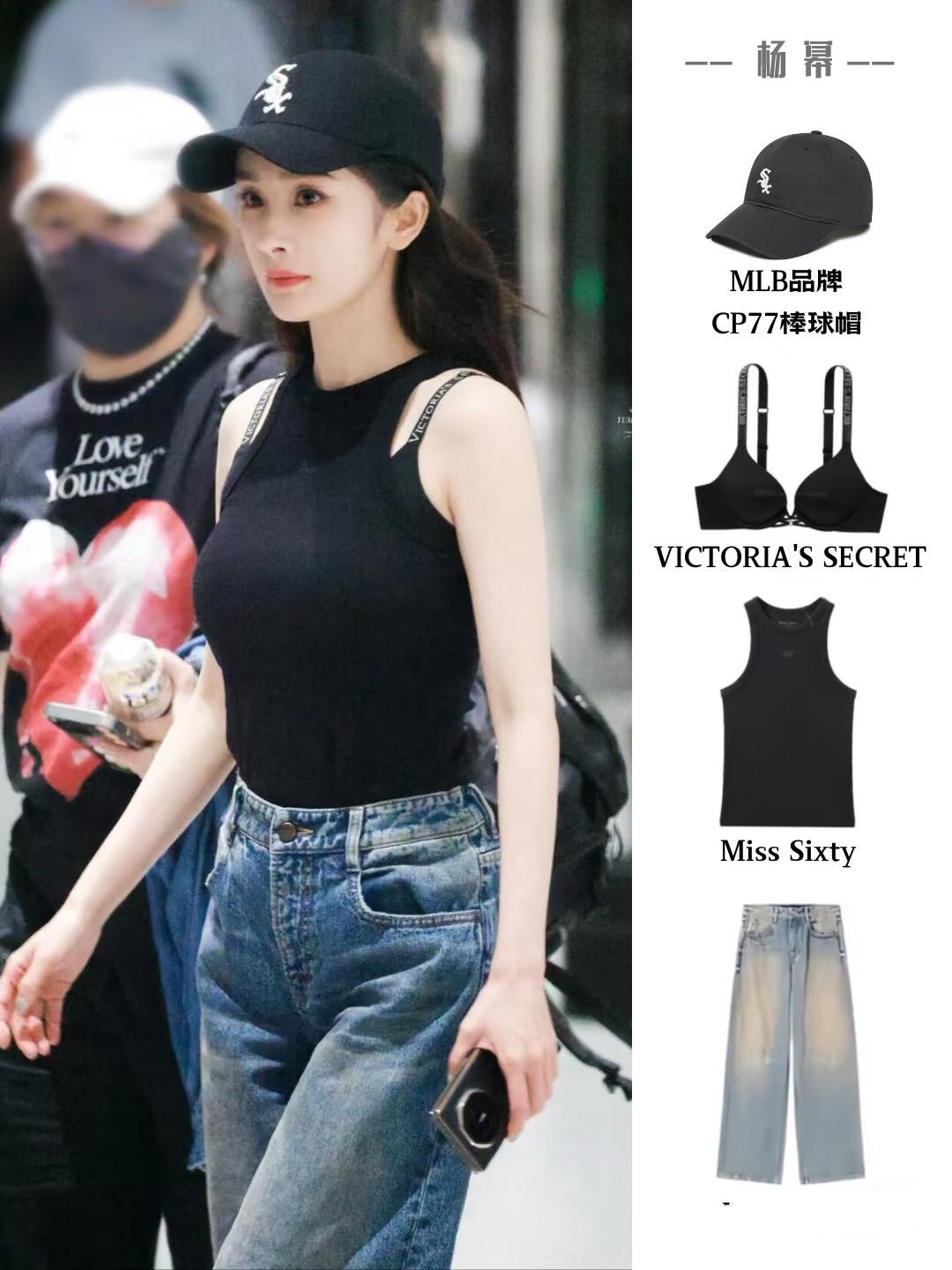 像這種緊身小背心,可以選擇時髦疊穿,豐富層次感、也更洋氣耐看。楊冪佩戴了深藍色棒球帽,蜜蜂包包,格外的拉風顯腿長。