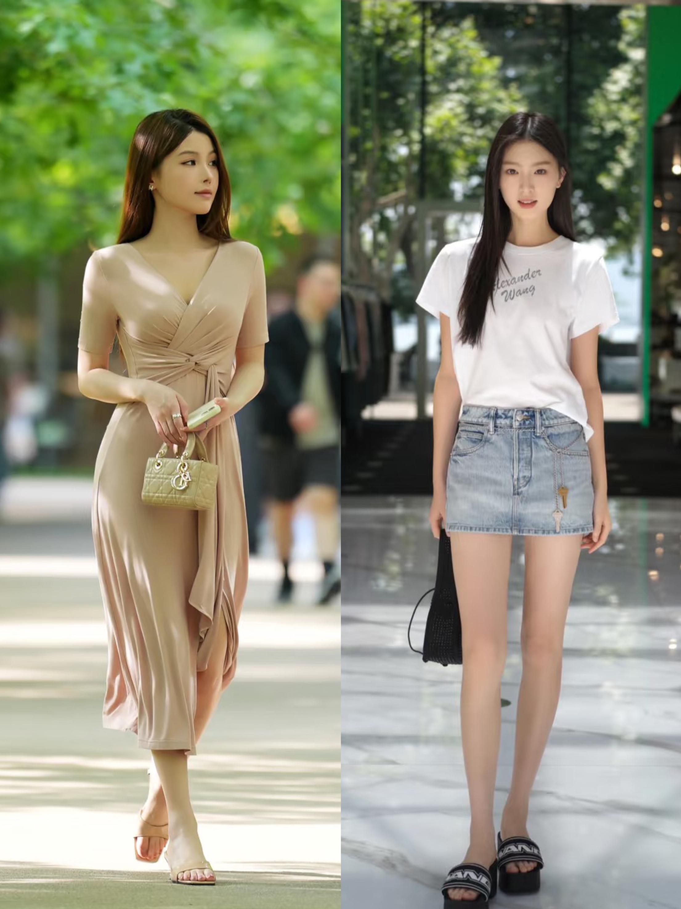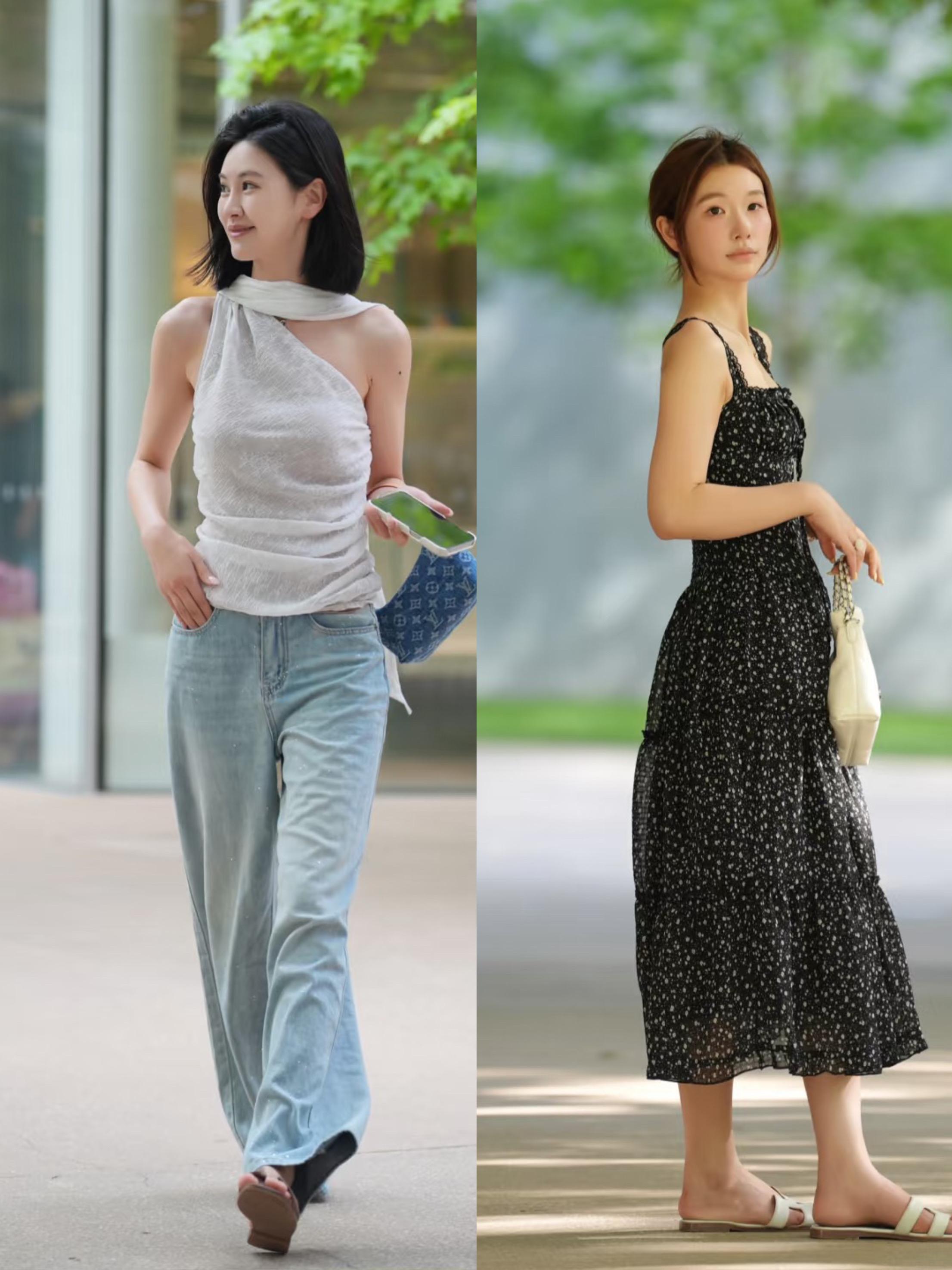 肩頸部線條比較優越的女生,就可以多嘗試露肩的穿搭。比如露肩的上衣、吊帶的連衣裙,營造出纖細的骨感美,也優化了頭身比例。