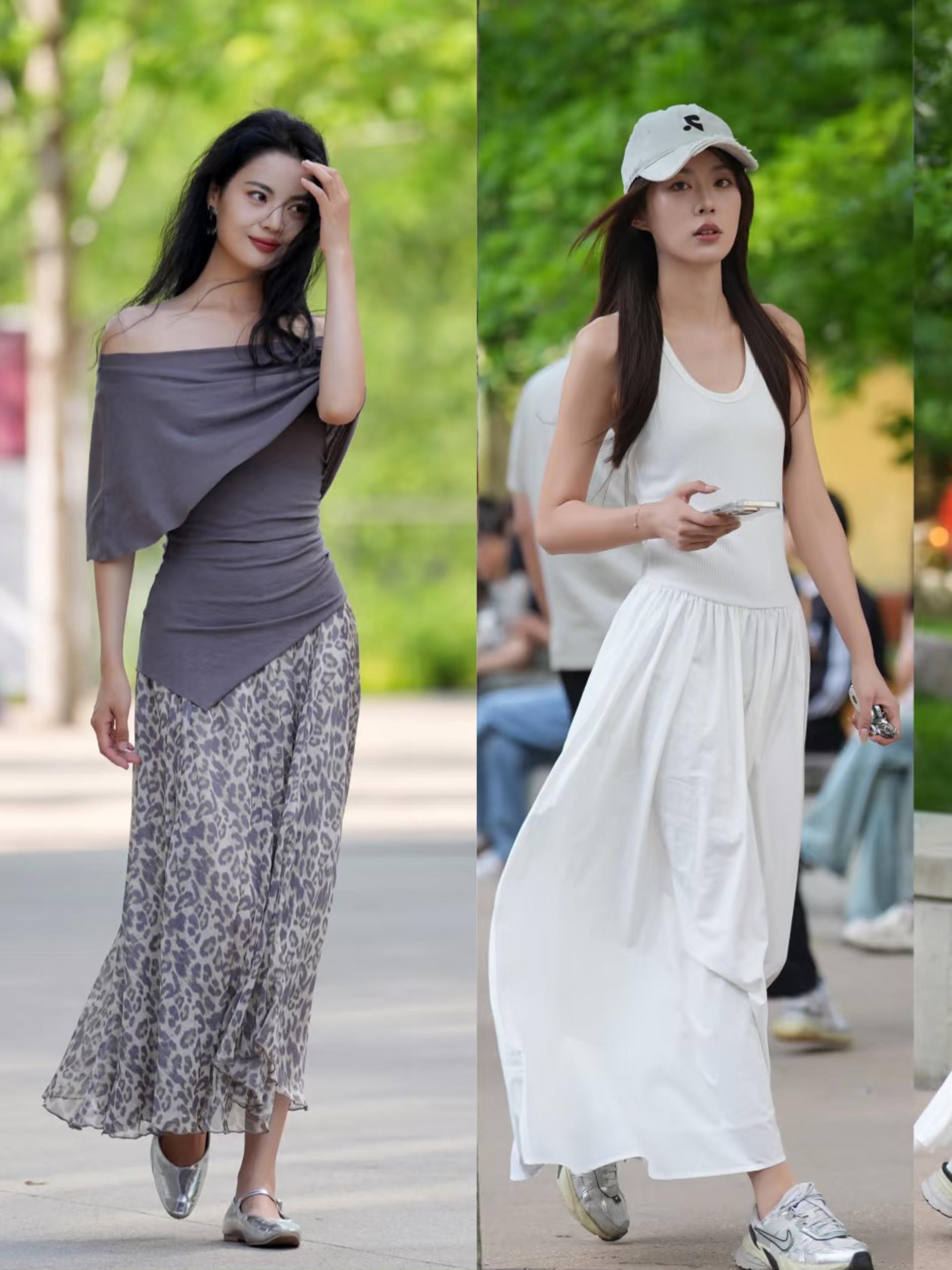 優雅的長裙,不管是半身裙還是連衣裙的款式,穿起來都更有女神範。尤其是白色的連衣裙,是一種上緊下松的款式,更加慵懶自在。