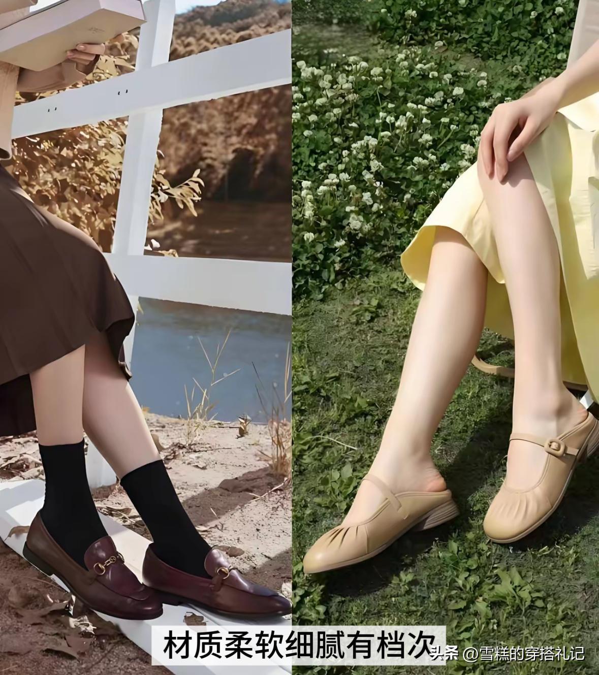 木林森的鞋款十分多樣化,其中最受中年女人歡迎的就是淺口奶奶鞋,皮質柔軟+鞋型簡約大氣,無論是配褲還是配裙都很好看,符合夏季的穿鞋需求。