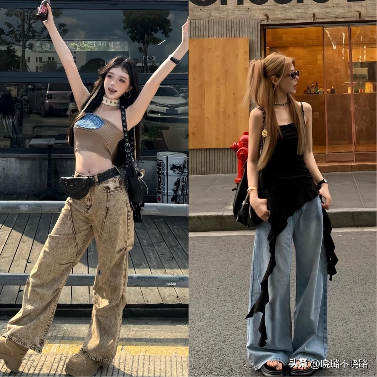 低腰褲這款單品的搭配完全可以直接結合露臍裝,尤其是屬於比較辣妹而且露膚度比較偏高的上衣與其進行組合,這樣的穿搭在夏季當中真的是回頭率超高的迷人辣妹裝。