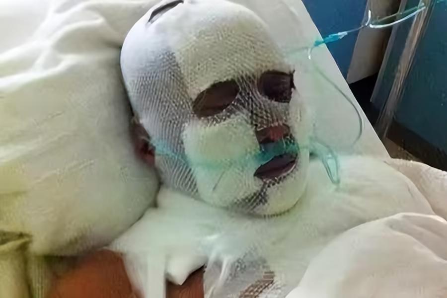手術室裏,醫生們爭分奪秒,一針又一針地縫合着他破碎的臉,縫了整整130多針,才勉強保住了他的臉。