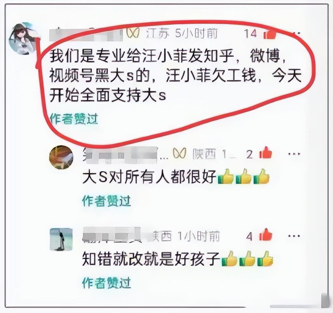 從網友發文截圖來看,這些水軍是汪小菲僱傭的,專業在各大平臺和視頻號黑大S,汪小菲欠工錢,今天開始全面支持大S。