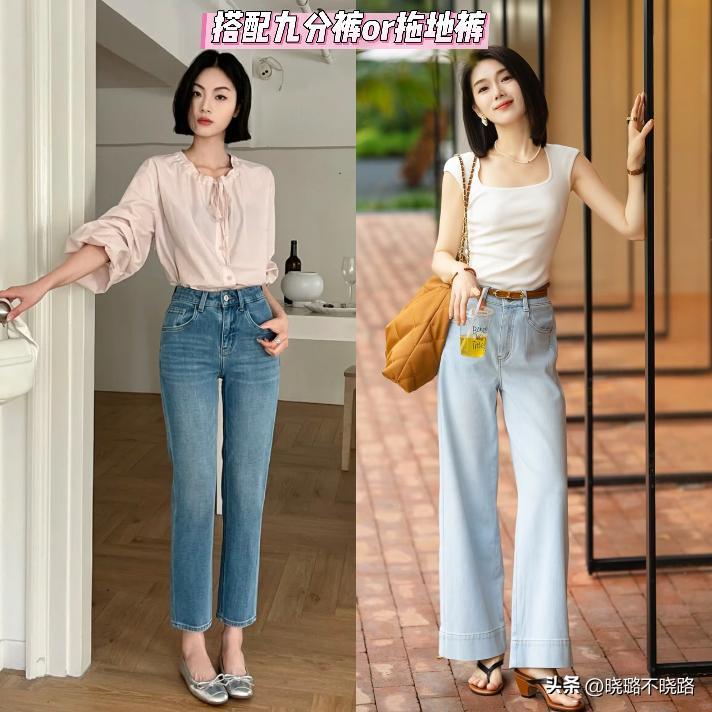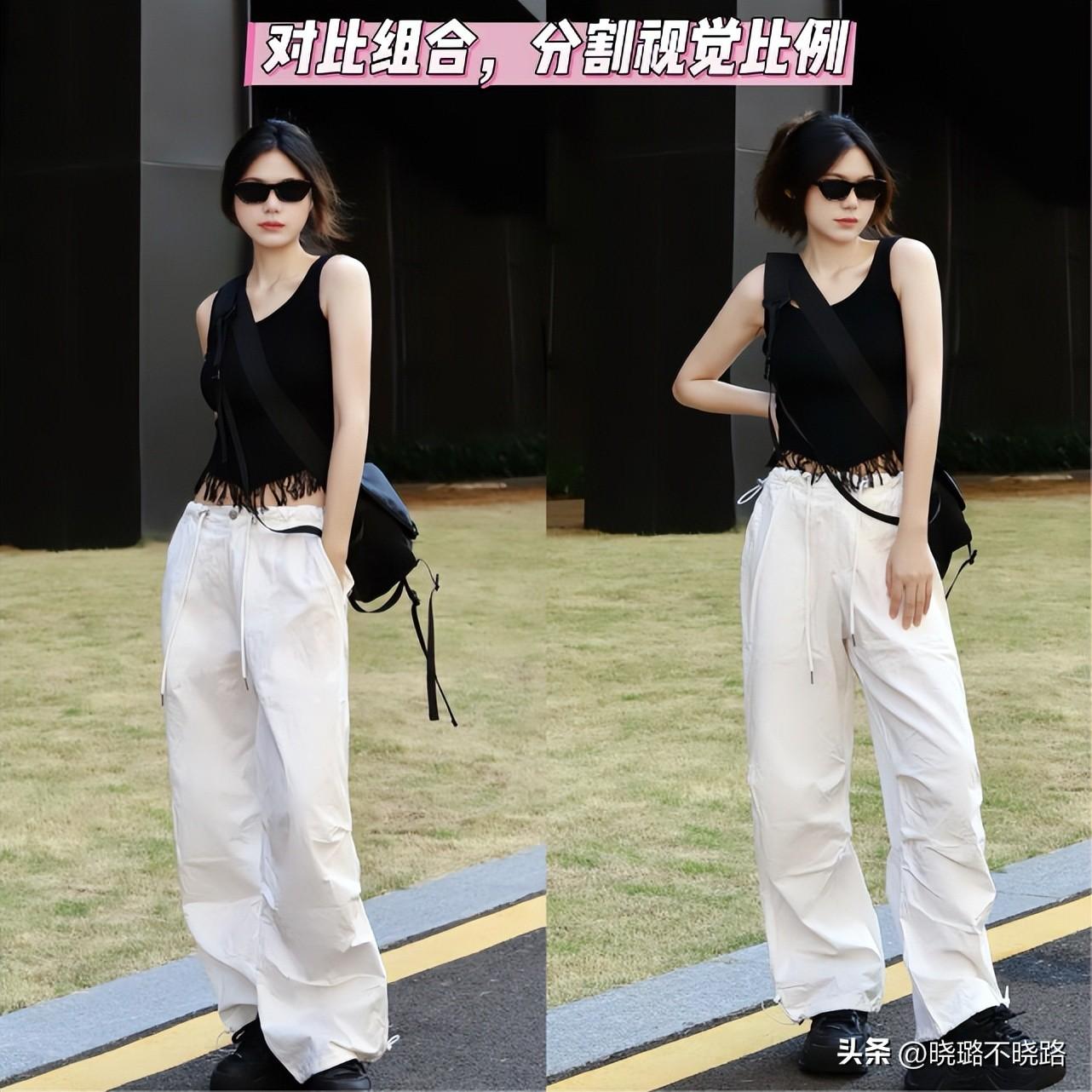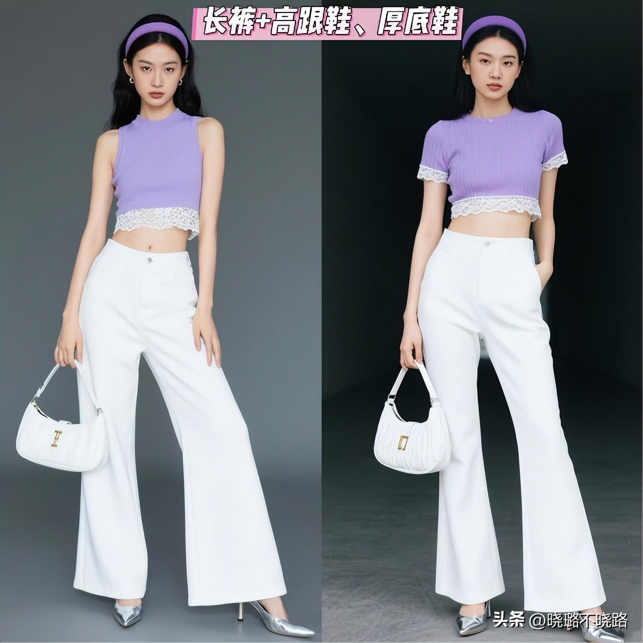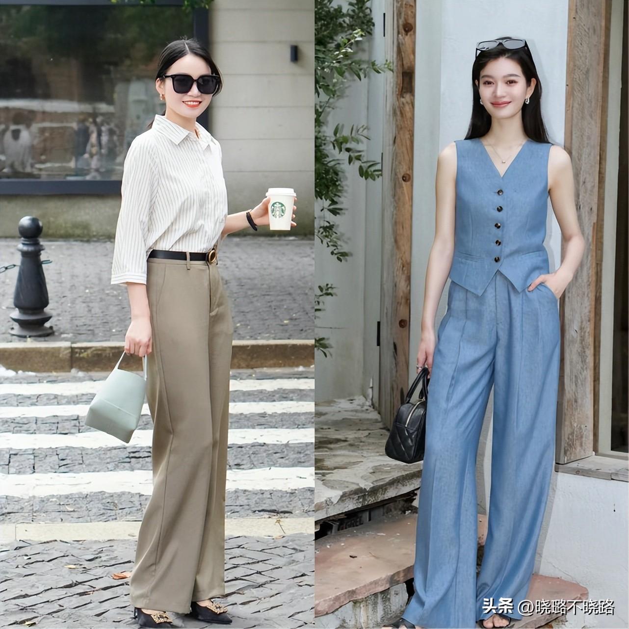 比較好的搭配當然還是可以優先選擇搭配露出來腳踝部位的九分褲,又或者是直接加長款的拖地型設計,穿起來的視覺效果可以讓我們整個下半身的腿部狀態自帶拉長感的展現。尤其是尤其是對於五五分的身材,又或者是腿型本身就沒有那麼長的女性而言,這兩款褲裝的搭配絕對是要比五分褲和七分褲更顯優勢的。