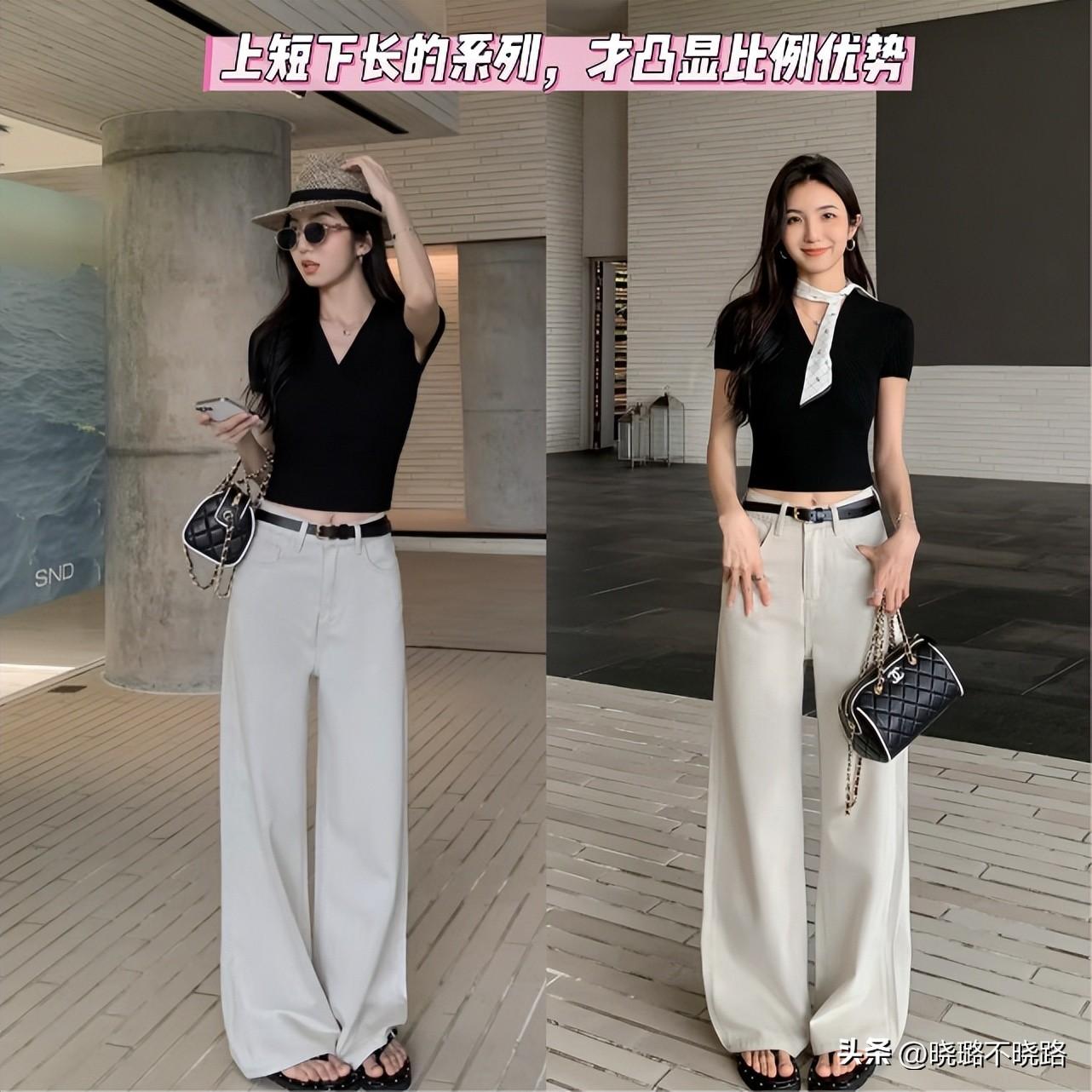 因爲我們下半身所選擇搭配的褲裝是屬於偏長款的設計,所以自上而下的標準比例也是非常有必要展現出來的,推薦各位女性可以直接選擇夏季當中非常熱門的一些短款的上衣,又或者是直接露出來腰部部位的露臍裝。上短下長的標準比例直接就被展現出來了,對於小個子的女性來說,這樣的傳達一定要多多的展現。