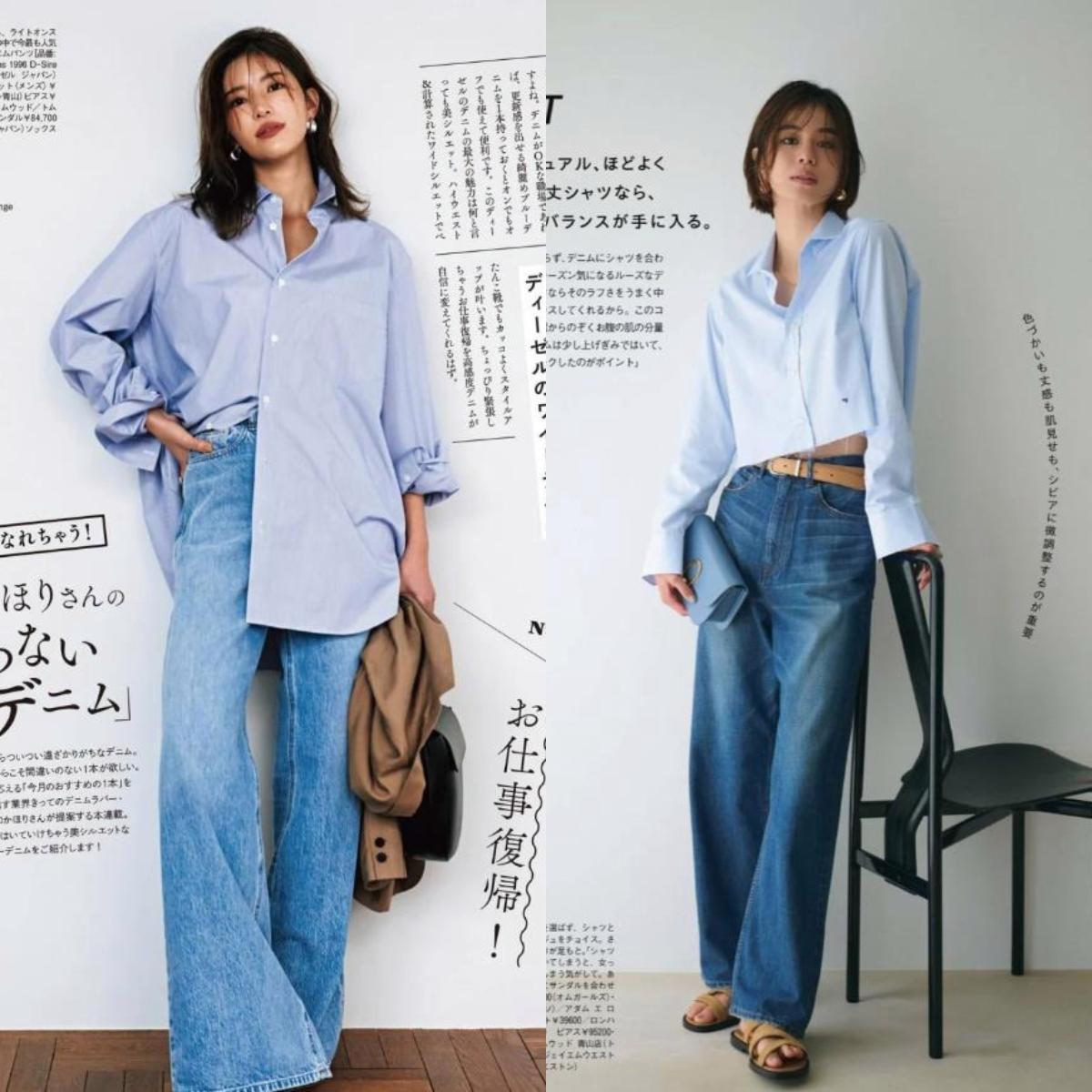 在夏日的穿搭裏,又怎能少得了藍色呢?這種色調可是最減齡顯清爽的,也能反油膩,一件水藍色襯衫,可以把膚色襯托得很白皙,搭配簡單的牛仔褲,就輕鬆穿出少年感。