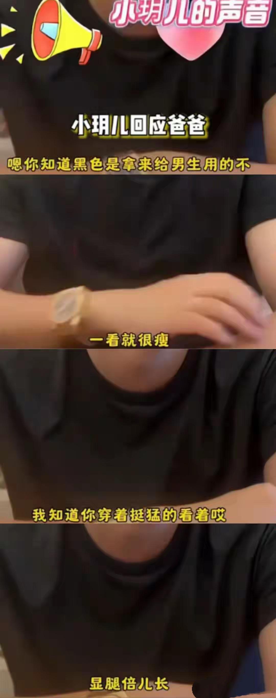 汪小菲在鏡頭前一個勁的誇小玥兒搭配的衣服好看,似乎有些“諂媚”的意思,玥兒也不慣着他,直接問爸爸,“你知道黑色是拿來給男生用的不?”