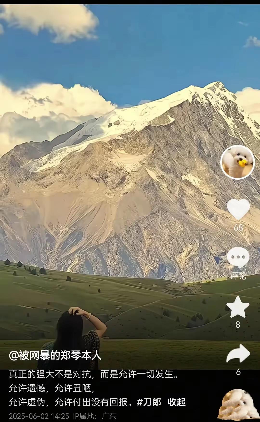可鄭琴,也不是好惹的。她又發文了,鄭琴雖然沒有提及事情本身。她說:真正的強大不是對抗、而是允許一切發生。允許遺憾、允許醜陋、允許虛僞、允許付出沒回報,允許……