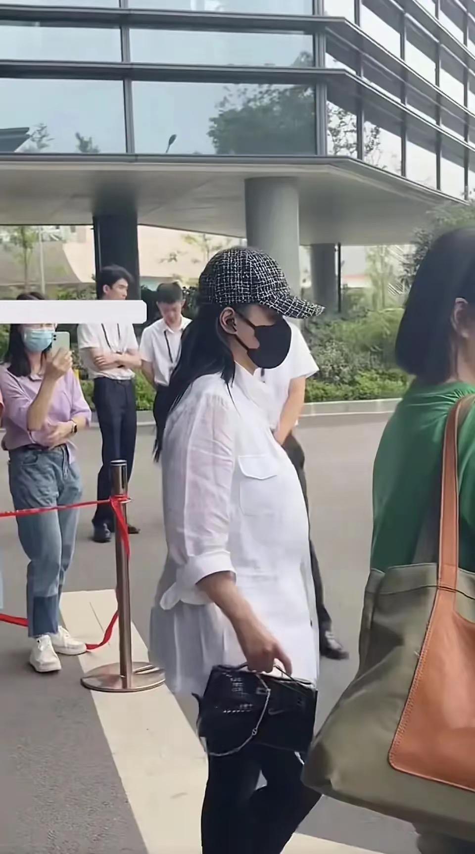 44歲阿嬌現身寧波,穿白襯衫配小黑褲打扮土氣,身材發福像孕婦