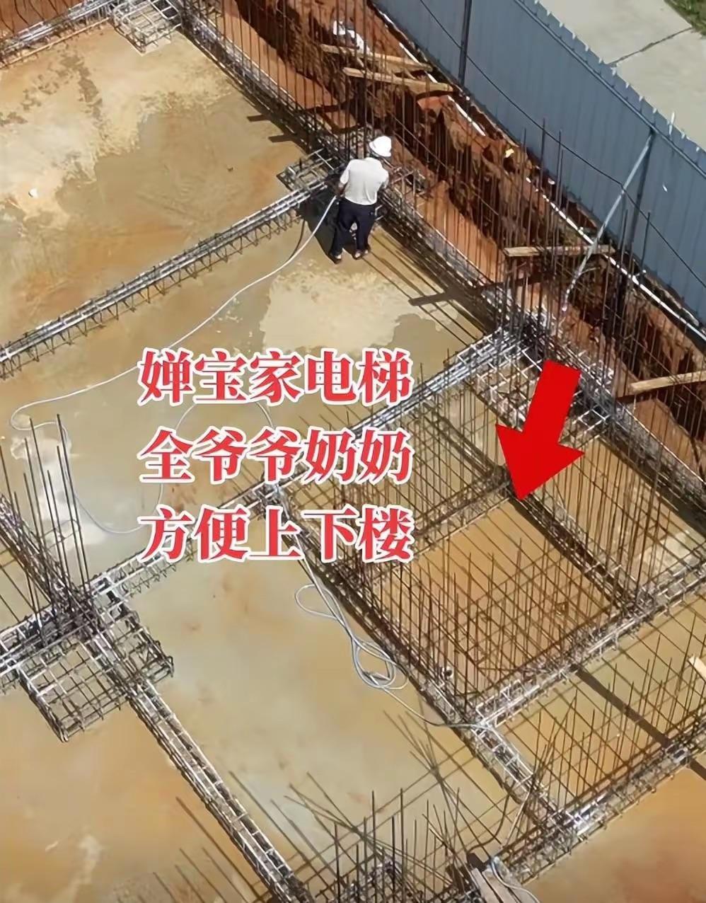 經歷了地面推平、打樁、澆築地基以後,全紅嬋老家的新房開始綁鋼筋了。沒想到施工隊的“大傢伙”讓網友們開了眼。