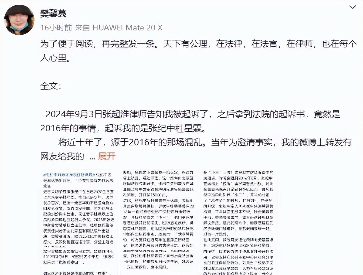 樊馨蔓連發4條微博,公開更多張紀中杜星霖醜聞