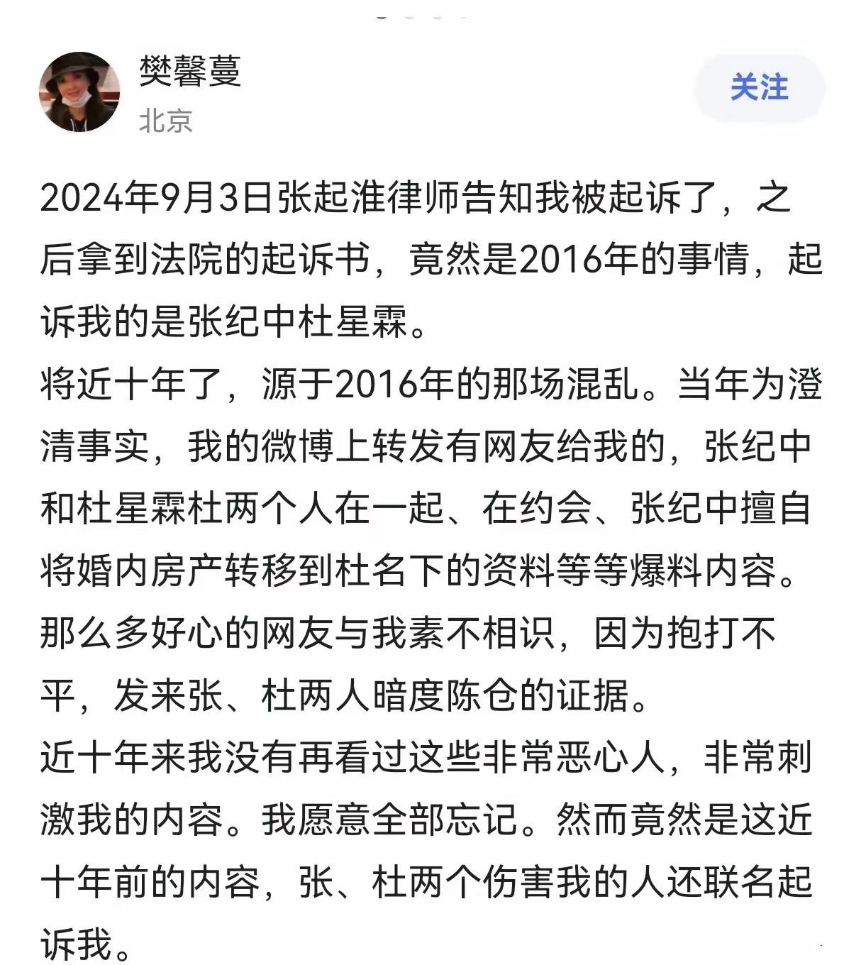 前妻樊馨蔓公開爆錘,回應被張紀中夫婦反訴一事