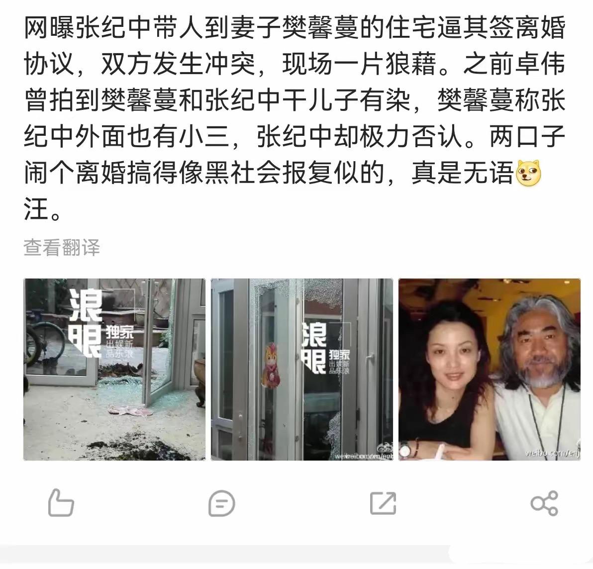 6月5日,前妻樊馨蔓的一則動態,又把張紀中送上風口浪尖。