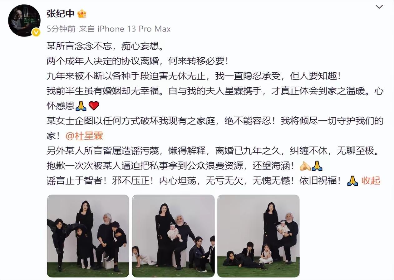 回應了!張紀中否認轉移3億資產,曬全家福表白杜星霖,內心坦蕩
