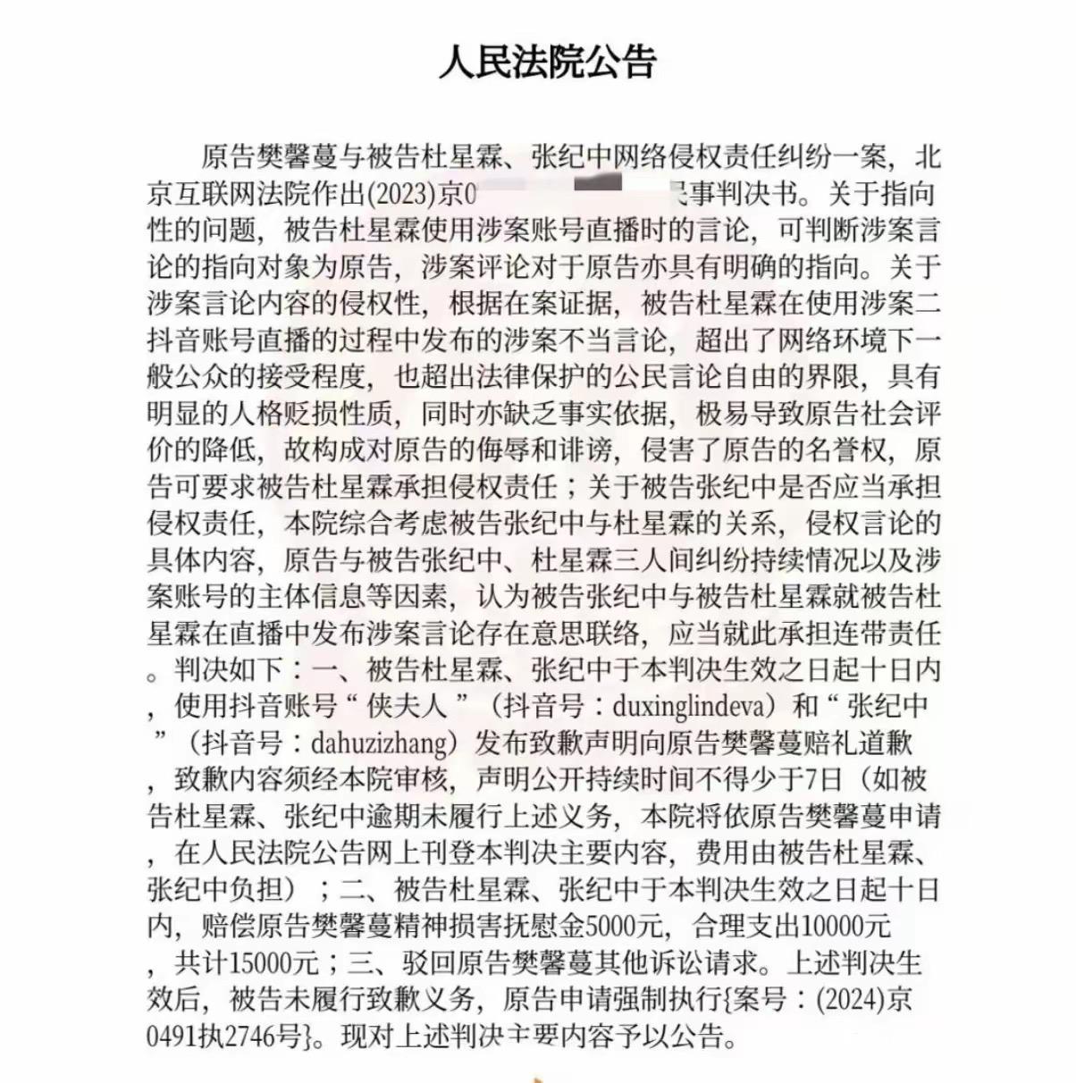 樊馨蔓本就是這段感情裏的受害者,她曾控告張紀中夫婦,也拿到了1.5萬元的賠償。但張紀中夫婦拒絕公開道歉,甚至有因爲公開前妻家庭住址,再次賠上2.5萬元。