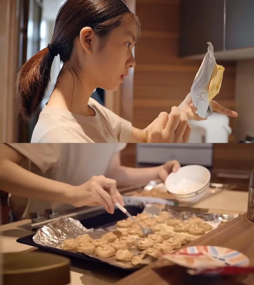 黃多多做的餅乾、麪包,看着就非常有食慾。尤其是她耐心的做曲奇餅乾的模樣,安靜又溫柔,側臉映着陽光,真美。