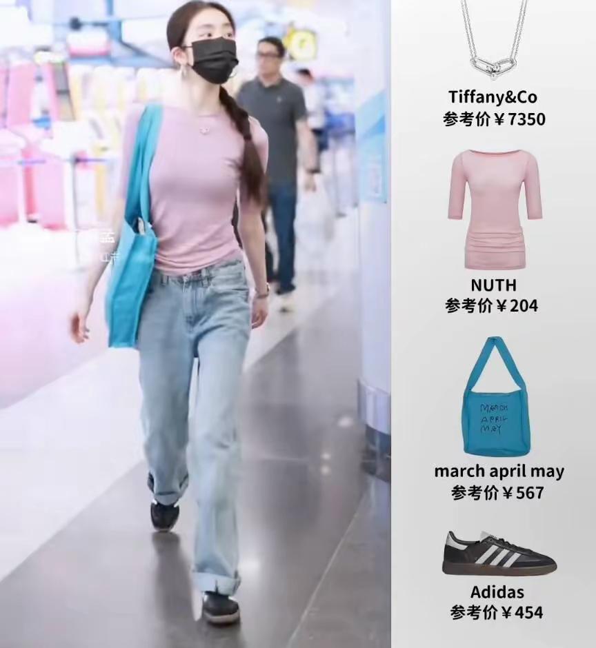 黃多多穿了一件修身的香芋色緊身衣,她又美又瘦身材很好。牛仔褲配運動鞋,走路帶風的模樣清純範十足,是青春美少女該有的模樣。