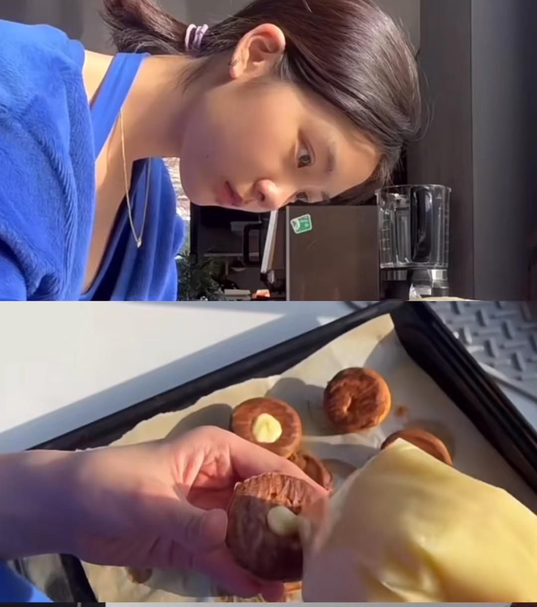 黃多多不僅長得美,會打扮,廚藝也不錯。她也經常在社交平臺分享一些自己做烘焙的視頻,專注的模樣真是讓人喜歡。