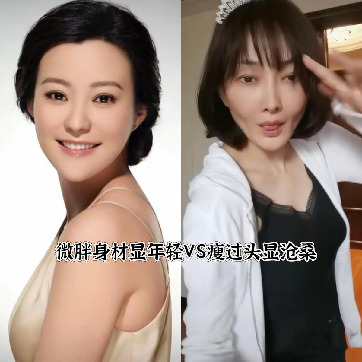 微胖的身材,飽滿的臉蛋,更不容易暴露年齡感。相反是太消瘦的臉龐、生硬的尖下巴,反而讓人覺得憔悴,氣色不好。