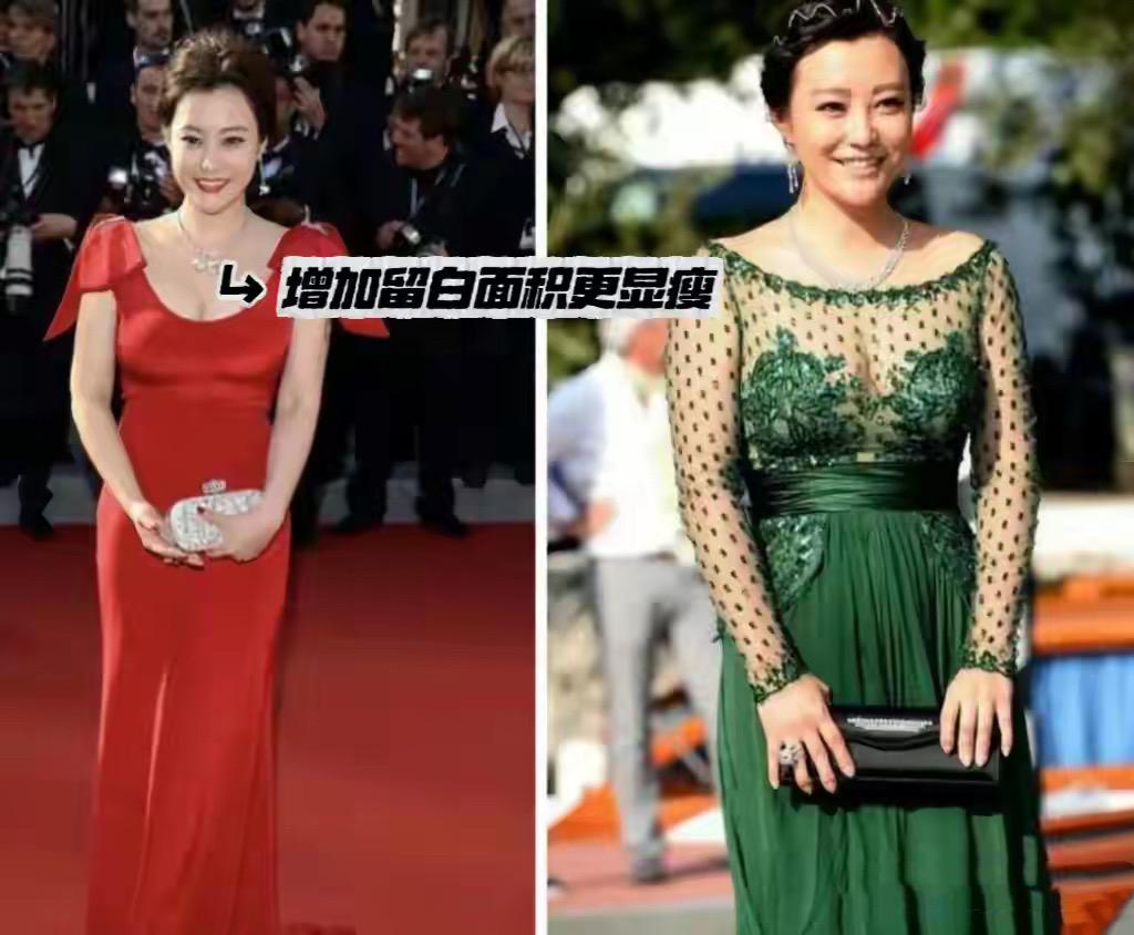 身材微胖的女性,穿衣不要那麼嚴謹,適當的露膚,是表現輕盈感的關鍵。比如大領口的紅色長裙,配溫婉的盤發,就特別端莊有女人味。