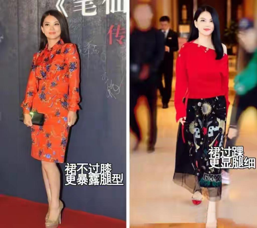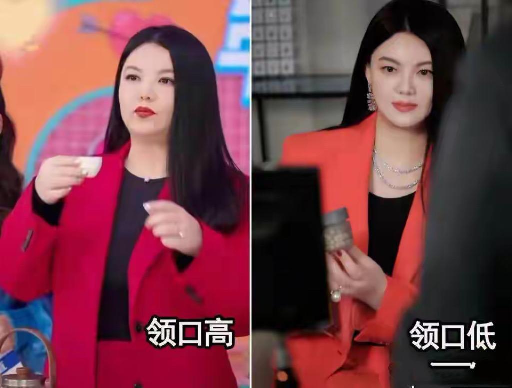 低領口,對於微胖女生來說很友好。看李湘的兩組穿搭對比,我們也很清晰的認識到,領口低一點,纔可以顯得脖頸更修長。