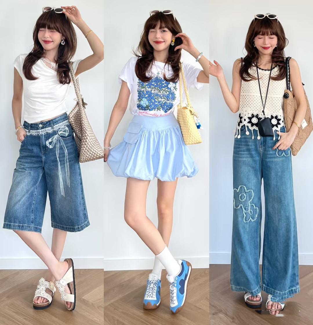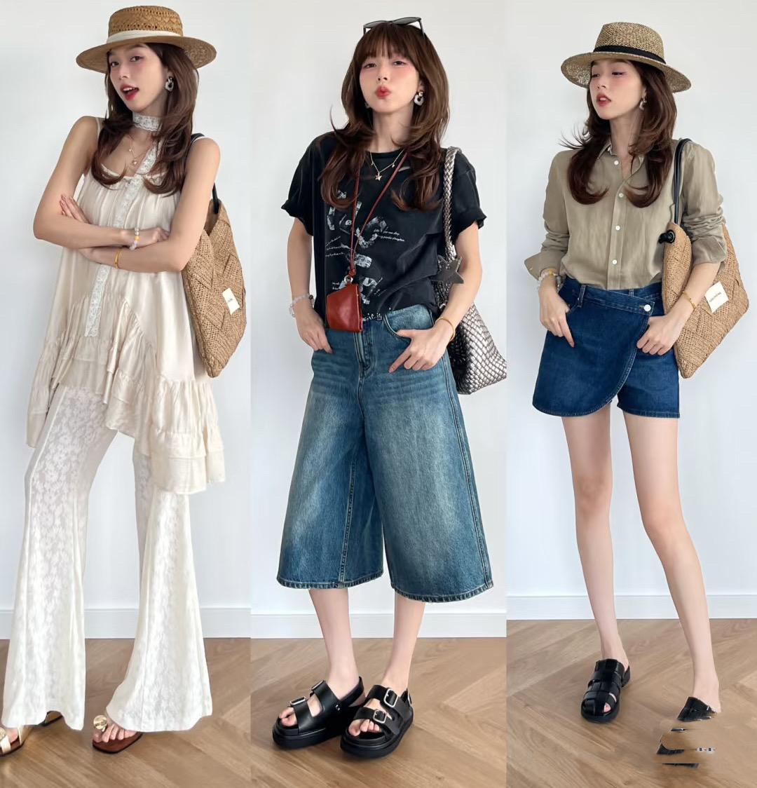哪怕是蛋糕裙、牛仔短褲,都可以選擇更個性不羈的款式。這種沒過膝蓋的牛仔短褲,選擇了寬鬆的褲筒。有一種自由不羈和颯美的格調,讓人的穿搭更加醒目。