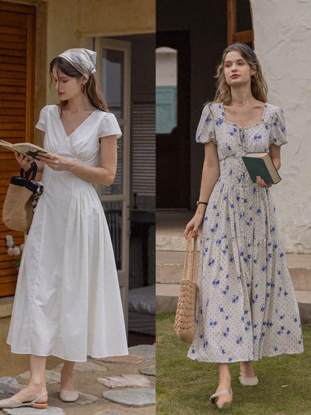 在優雅的法式穿搭中,白裙氣質更高級。像法式白裙,配上V領、泡泡袖更多時尚,清爽且顯瘦。