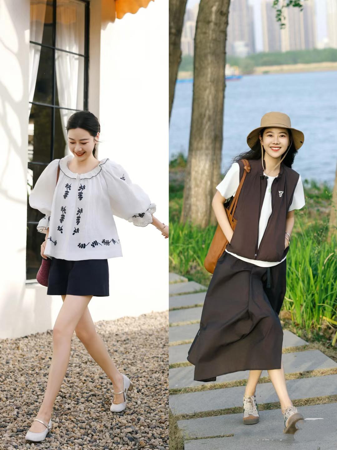 休閒舒適一點的穿搭,也會更加減齡。比如民族風的泡泡袖小衫,棗紅色的半身裙,這搭配簡約又清爽,是一種很輕盈又甜美感覺。