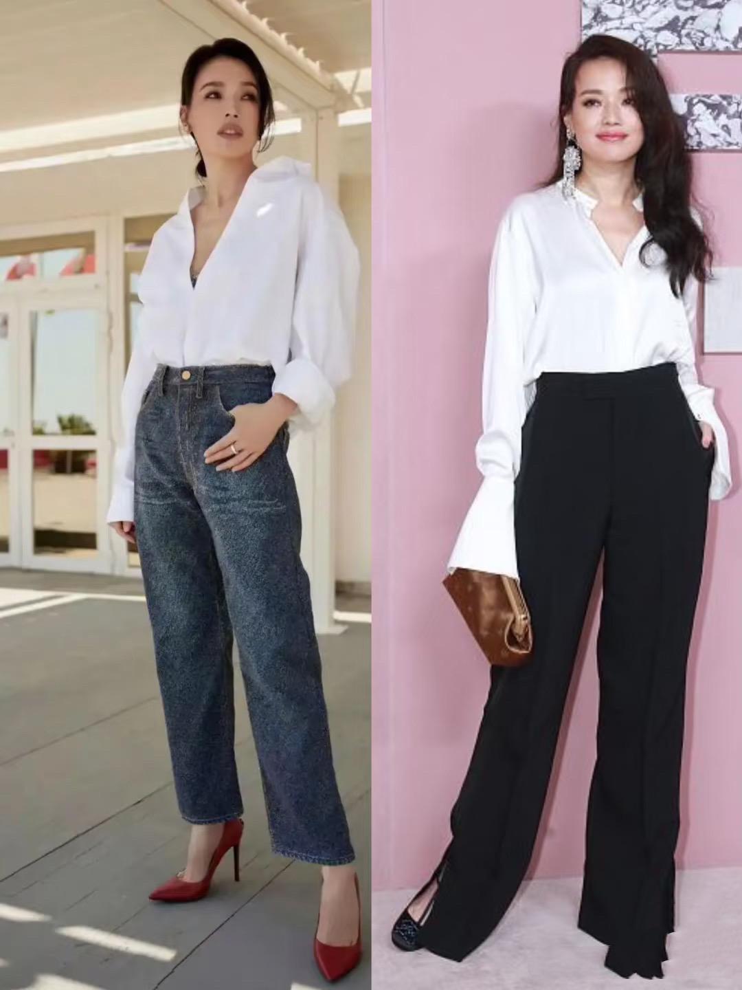 白襯衫牛仔褲、或者白襯衫小黑褲,都是經典的穿搭look。這打扮不挑人、鬆弛又顯氣質,日常或者通勤都能穿。