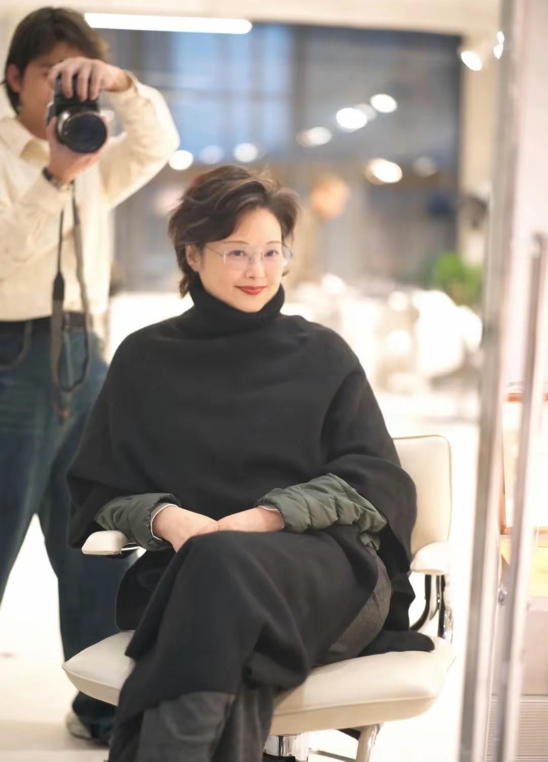 即便如此,在老公的鏡頭下,袁立依然非常溫柔。她帶着金屬邊框的眼鏡、留着一頭利落的短髮,眉眼溫柔,彷彿又回到了年輕的時候。