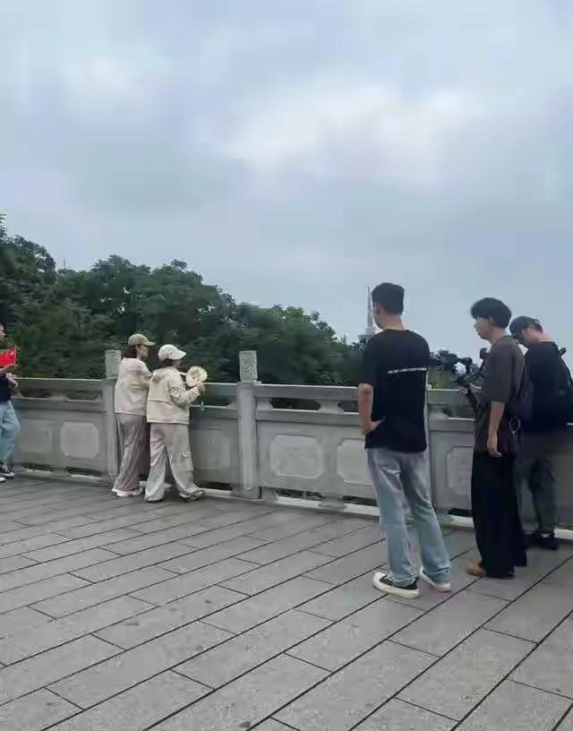 長髮嶽麓山偶遇謝娜錄節目,是在6月9日的一大早。謝娜站在橋邊,背影很少女,一點都不像四十來歲的女人。