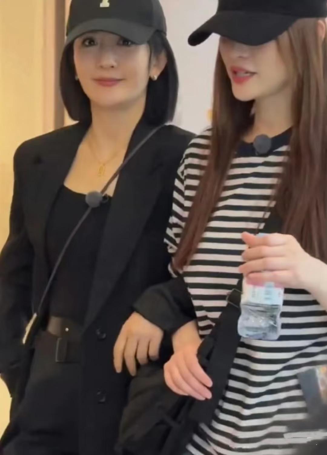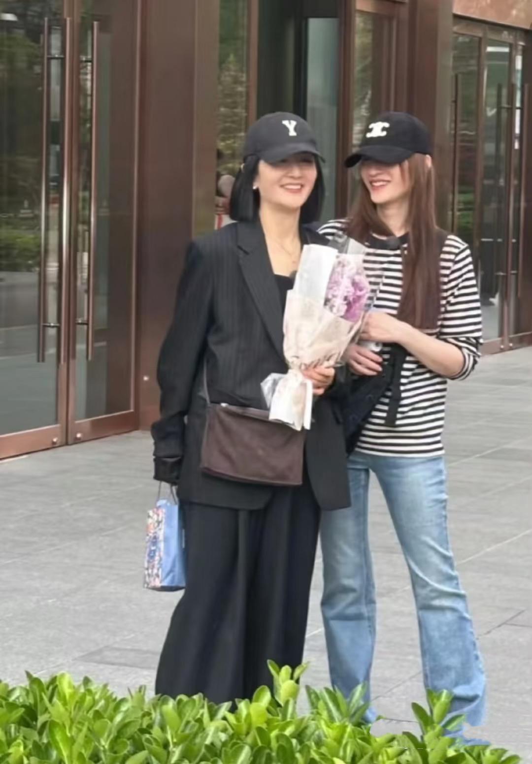 和李小冉在一起逛街的謝娜,她真的又高又美又白,這黑色西服套裝的穿搭,高級鬆弛、太養眼了吧。
