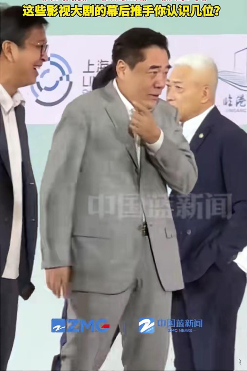 但是等論壇結束,陳寶國和影視大佬們合影的時候,網友就紛紛發現了不對勁。首先是陳寶國的雙腿特別細,不知道是褲型的原因還是什麼,顯得上半身很壯,頭身比較大。