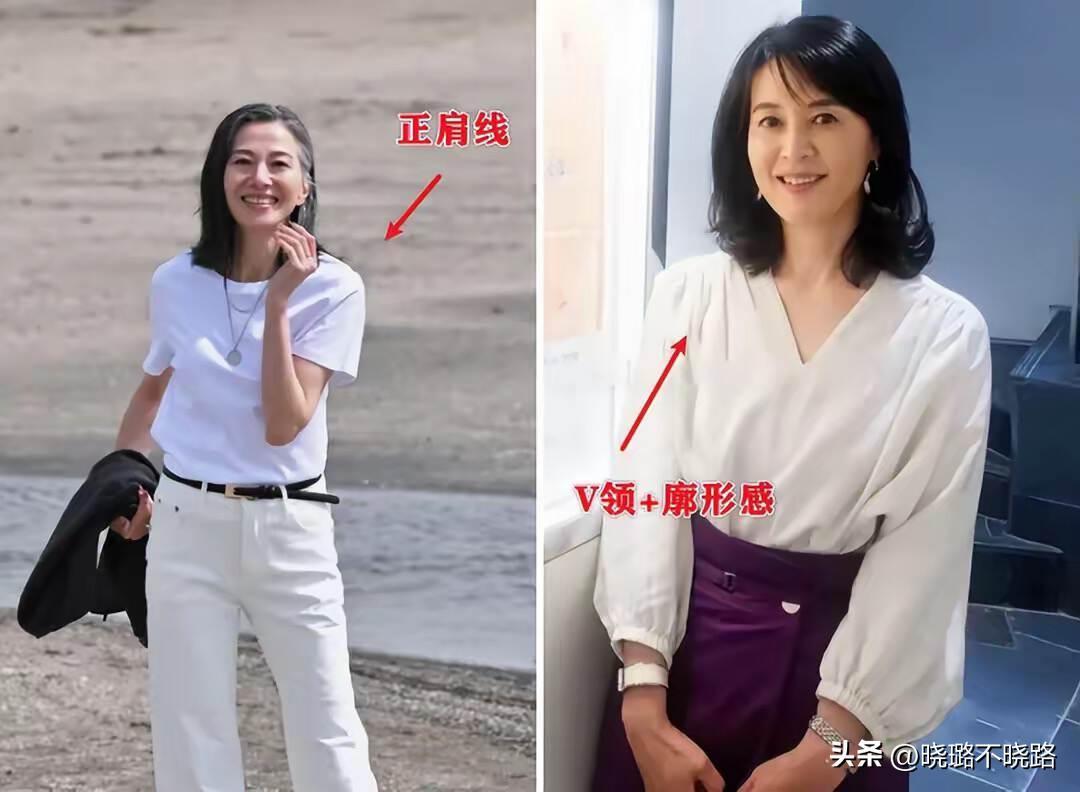 想要穿出顯瘦的效果,上衣的領口就不能太窄,建議可以選擇V領、低圓領或者蕩領款式,露出鎖骨跟頸部線條,技能優化頭肩比例,又可以增加呼吸感。