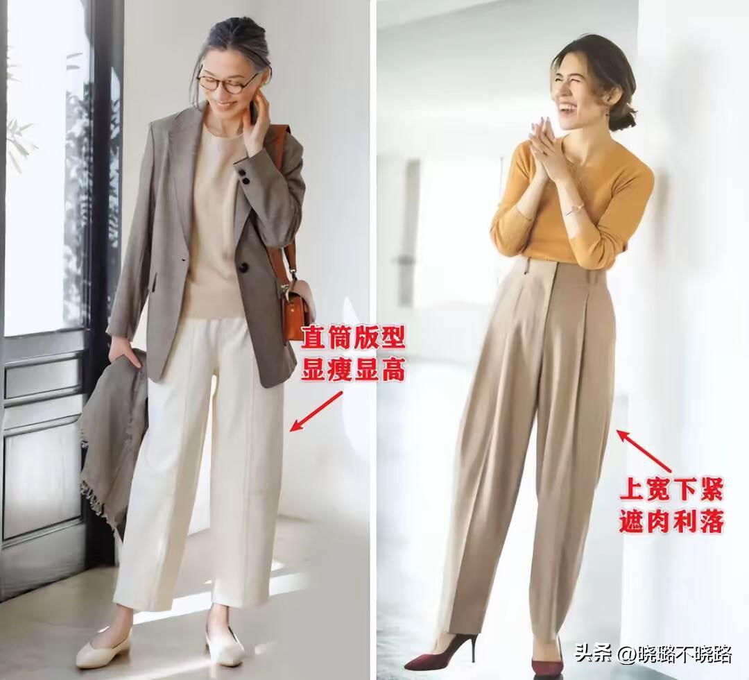 或者可以嘗試一下“上寬下緊”的褲型,遮肉又利落,好比蘿蔔褲,特別適合中年女人去嘗試,褲型流暢顯高效果好,穿上身也很有氣質。