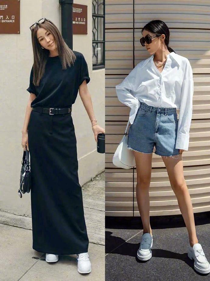 寬鬆的白襯衫是打造休閒英倫風的利器,其柔軟的面料與隨性的剪裁,營造出慵懶的氛圍。搭配破洞直筒牛仔褲,破洞元素爲整體造型增添不羈感,直筒版型修飾腿型,展現隨性灑脫的氣質。腳上搭配一雙復古帆布鞋,簡約又舒適,再戴上一頂草編漁夫帽,夏日休閒英倫風撲面而來。比如圖中模特將襯衫下襬隨意塞進褲腰一側,露出纖細腰線,整體造型慵懶又不失時尚感。