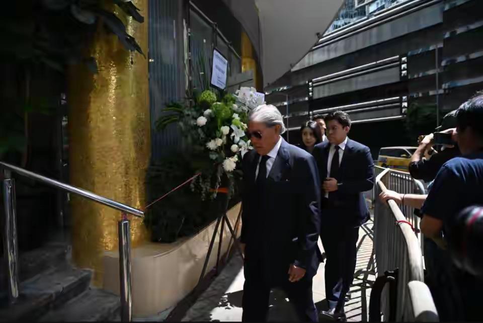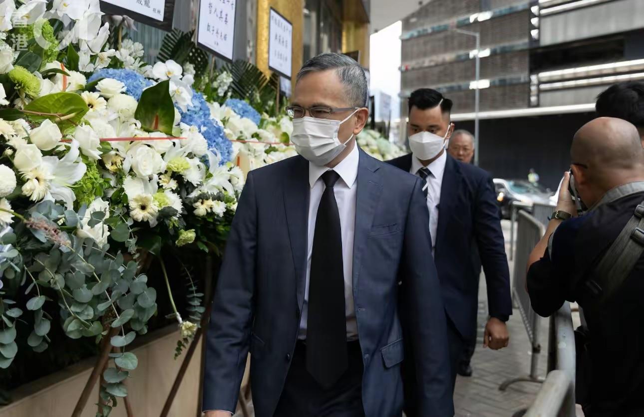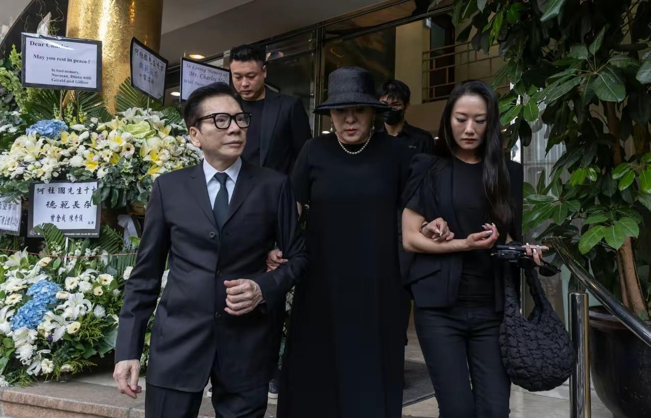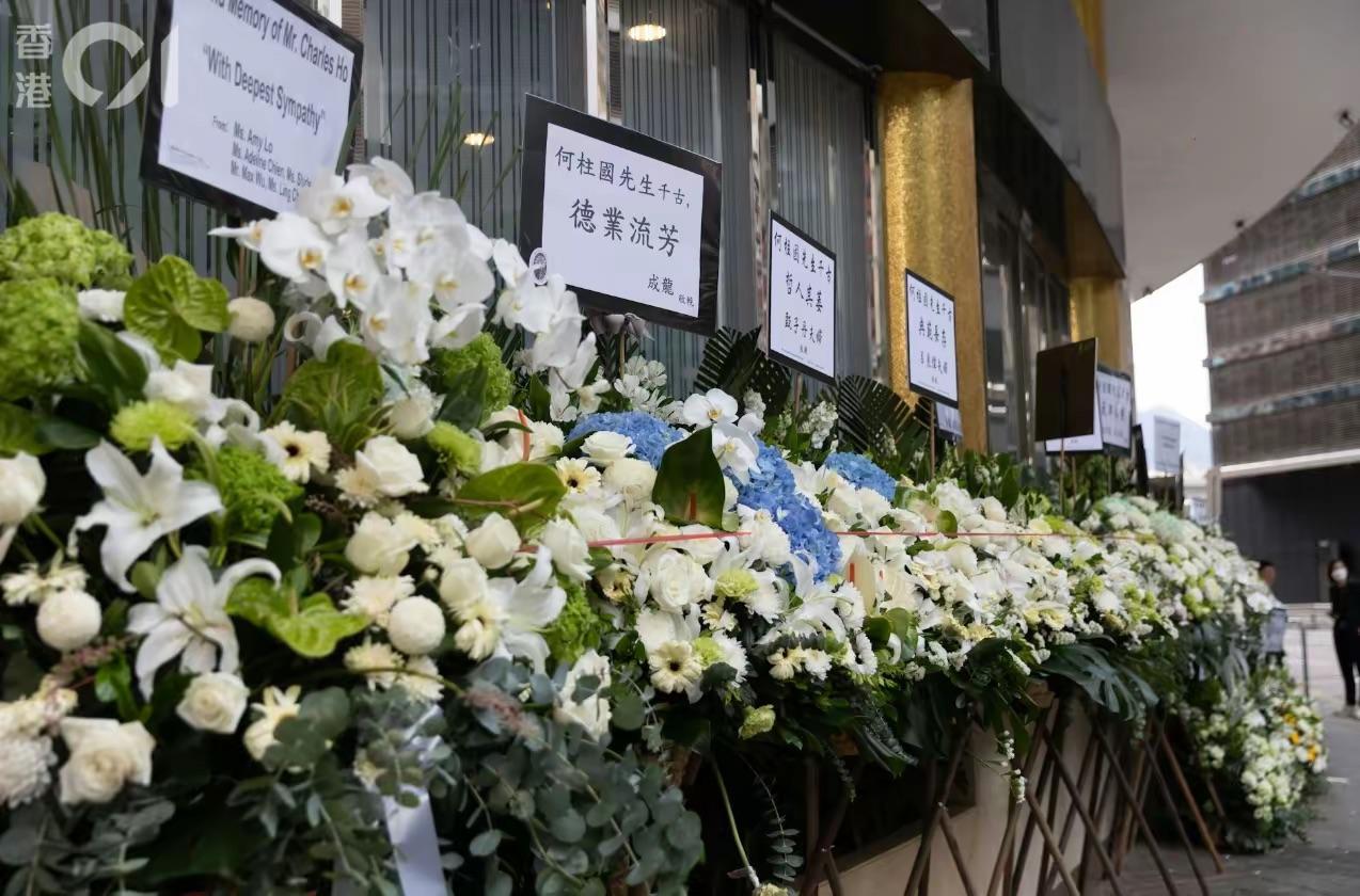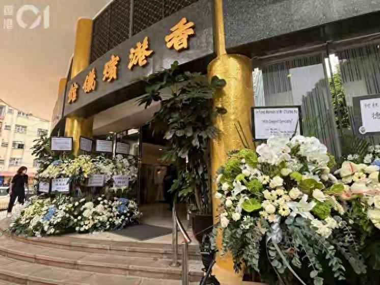 在靈堂前掛着“永遠懷念”的匾額,門外也堆滿了白色的花籃。有很多知名人士到場送別,比如英皇集團楊受成、林恬兒的父親林建嶽,他和何柱國是親家關係。
