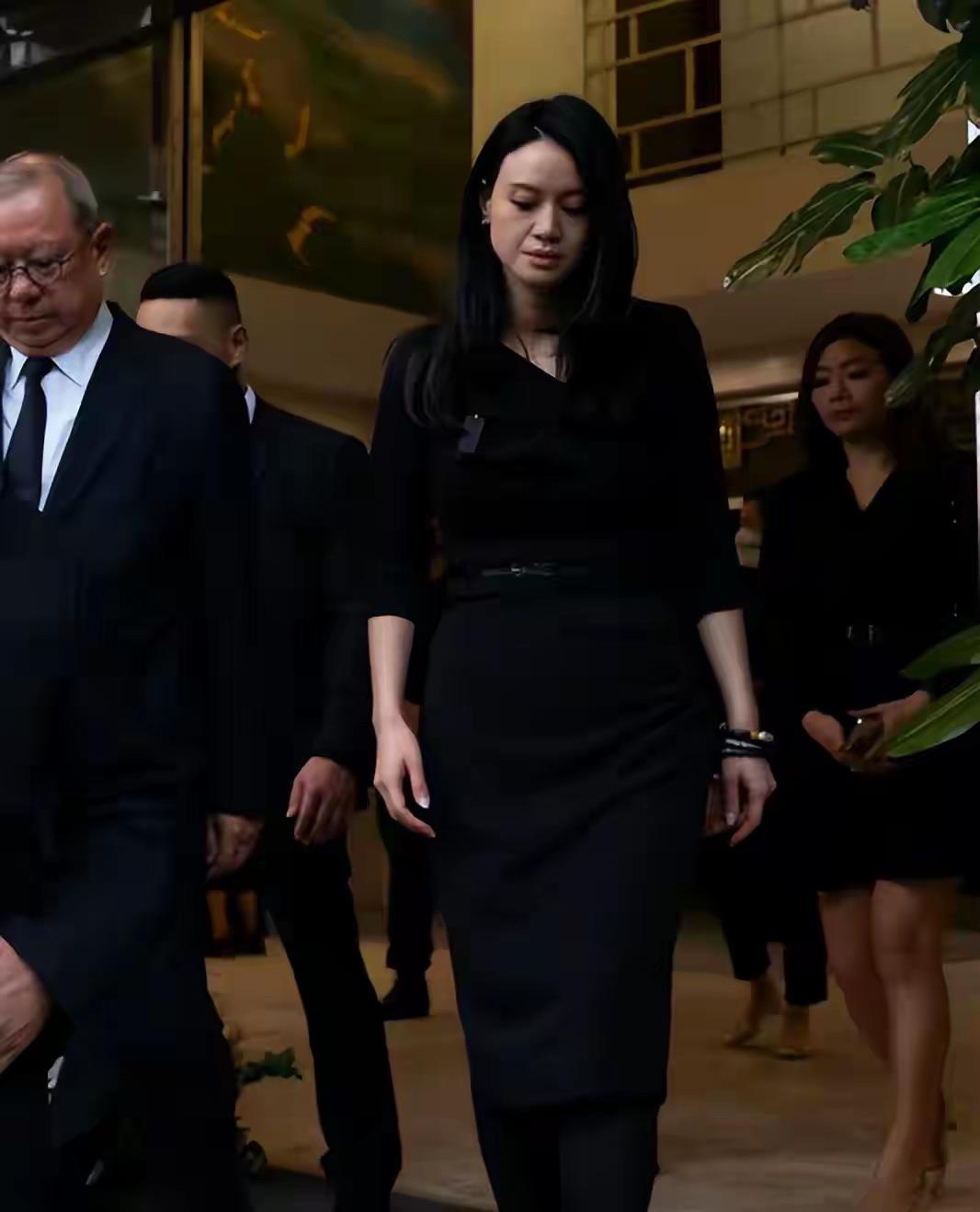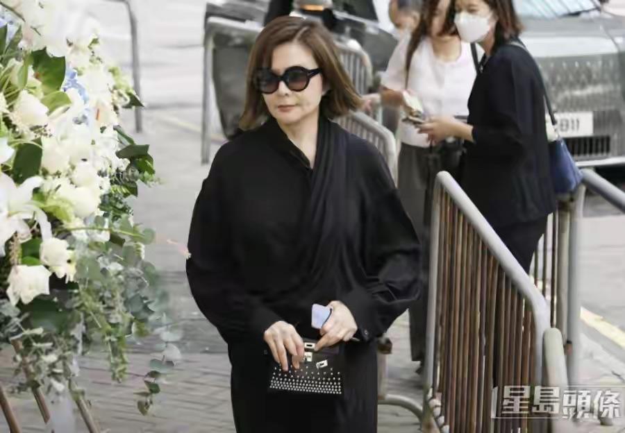 還有美女大明星關之琳也來送別老先生,關之琳穿了黑色襯衫,帶着黑色墨鏡,手裏的愛馬仕也是黑色,一身素衣明星派頭十足。
