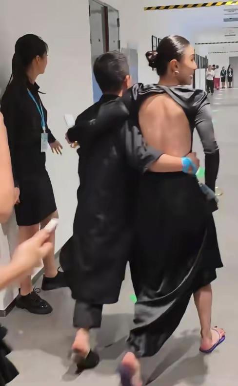 這位男士,個子不高、長相一般,穿了黑色廓形風衣、一雙半拖皮鞋,但是他輕車熟路的摟着宋佳的腰,就讓人感覺到倆人關係不一般。